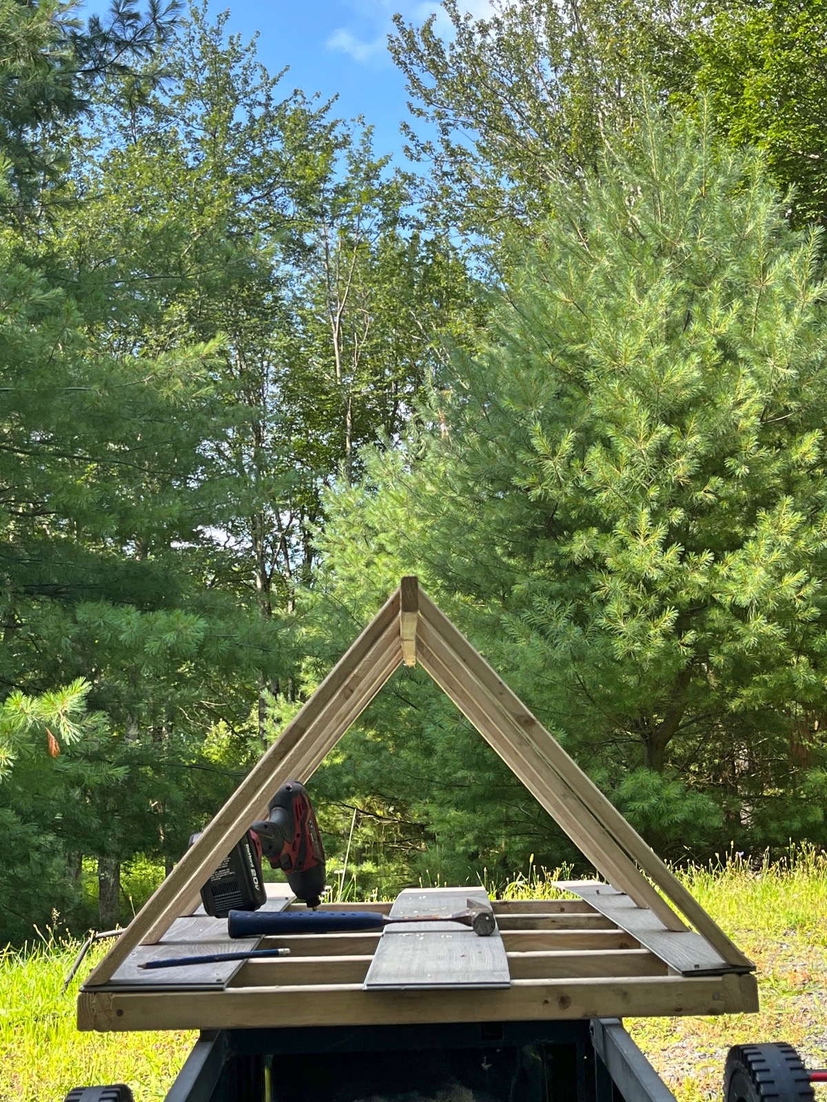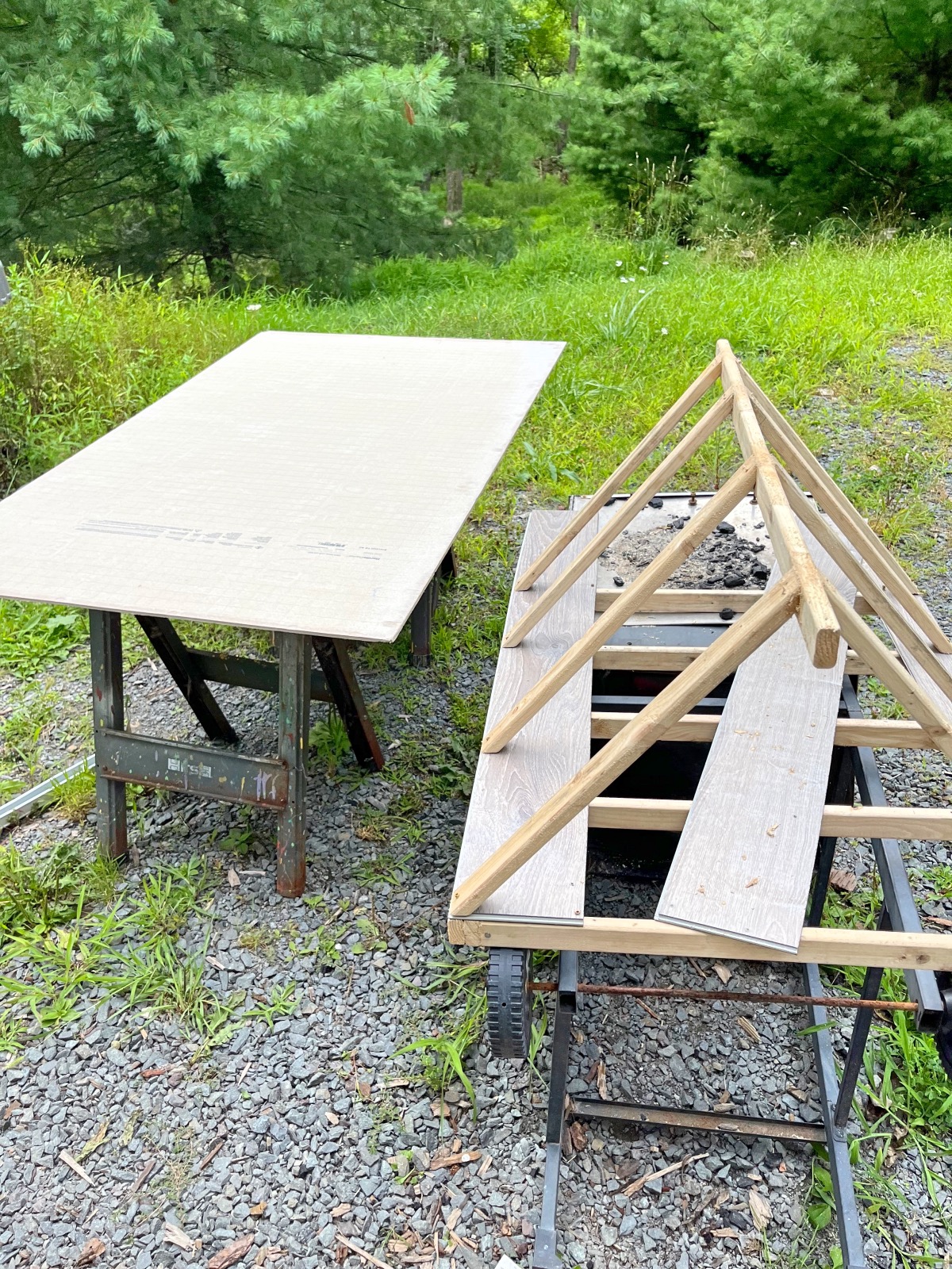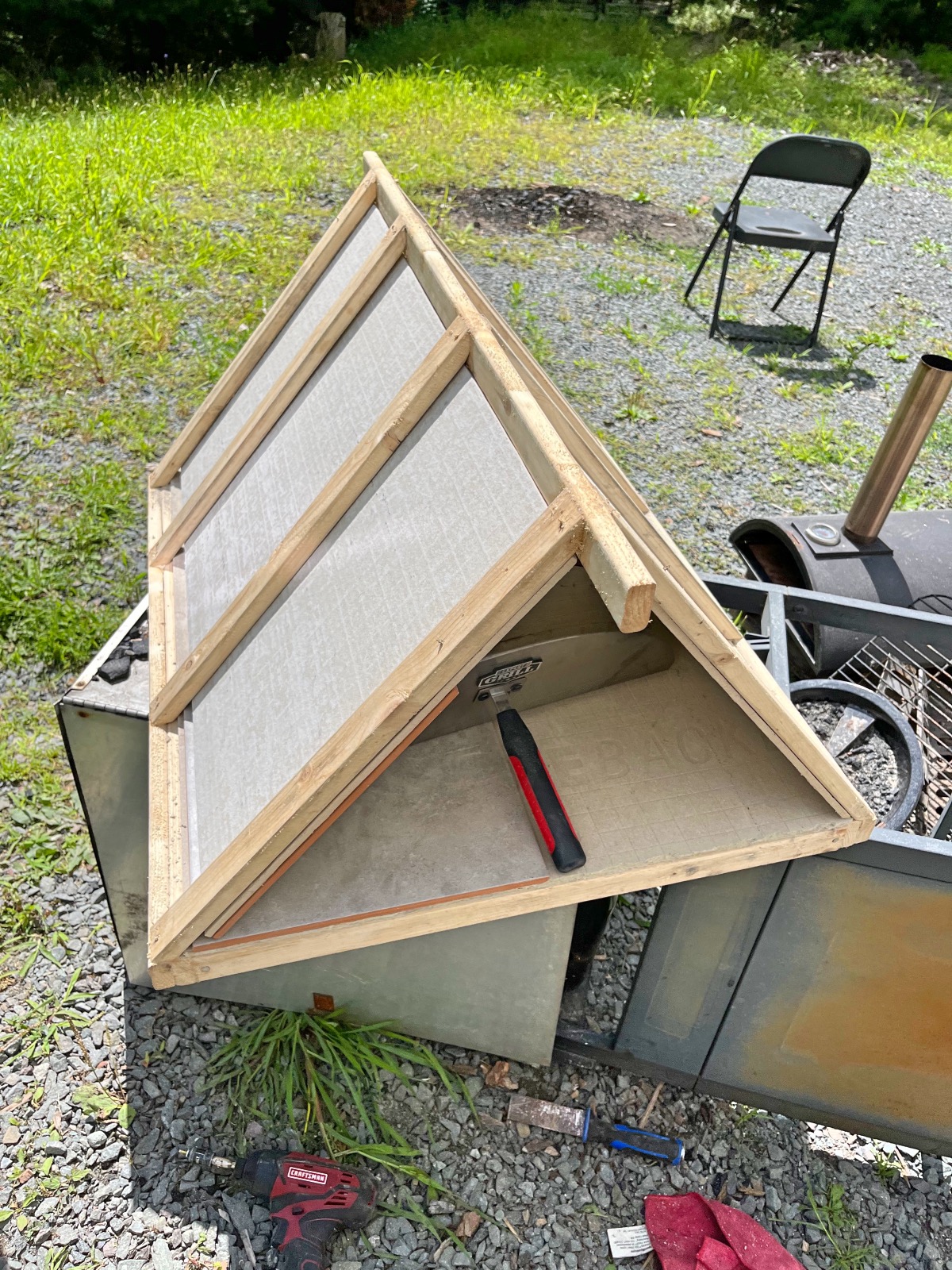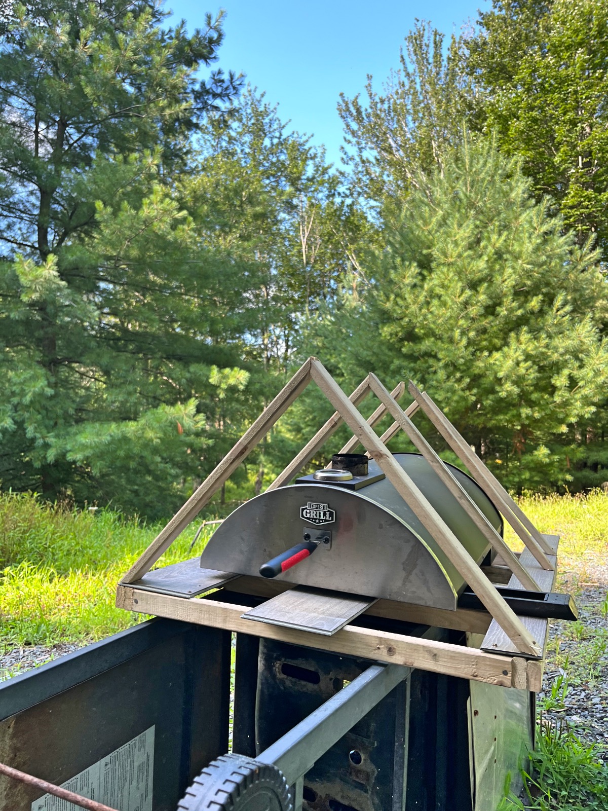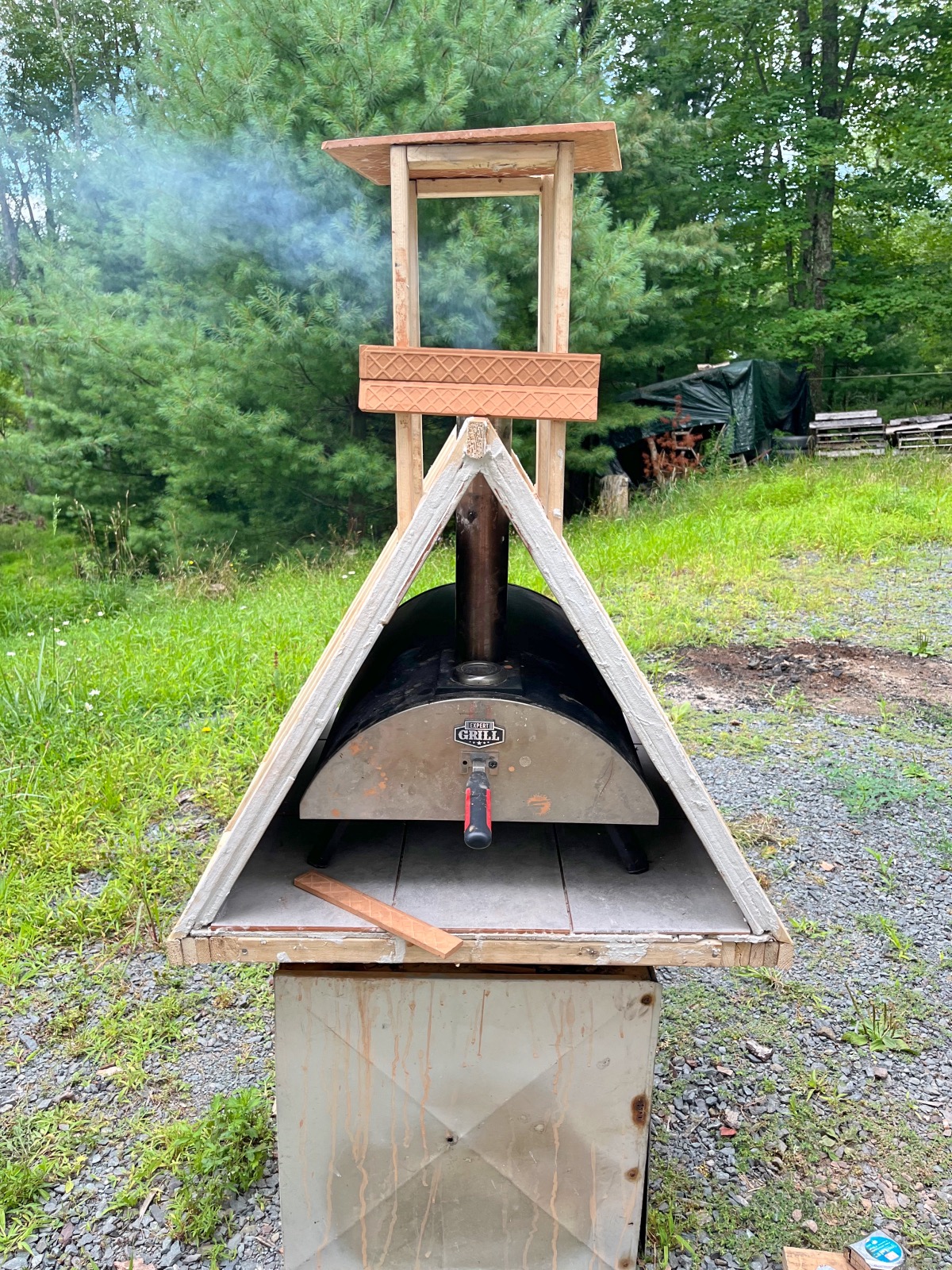 We recently purchased the Expert Grill Charcoal Pizza Oven from Walmart. My goal is to see if I can build a club house to fit in my new pizza oven on the deck. There is no plans for this build, I’m doing it as I go and changing my mind a thousand times =)