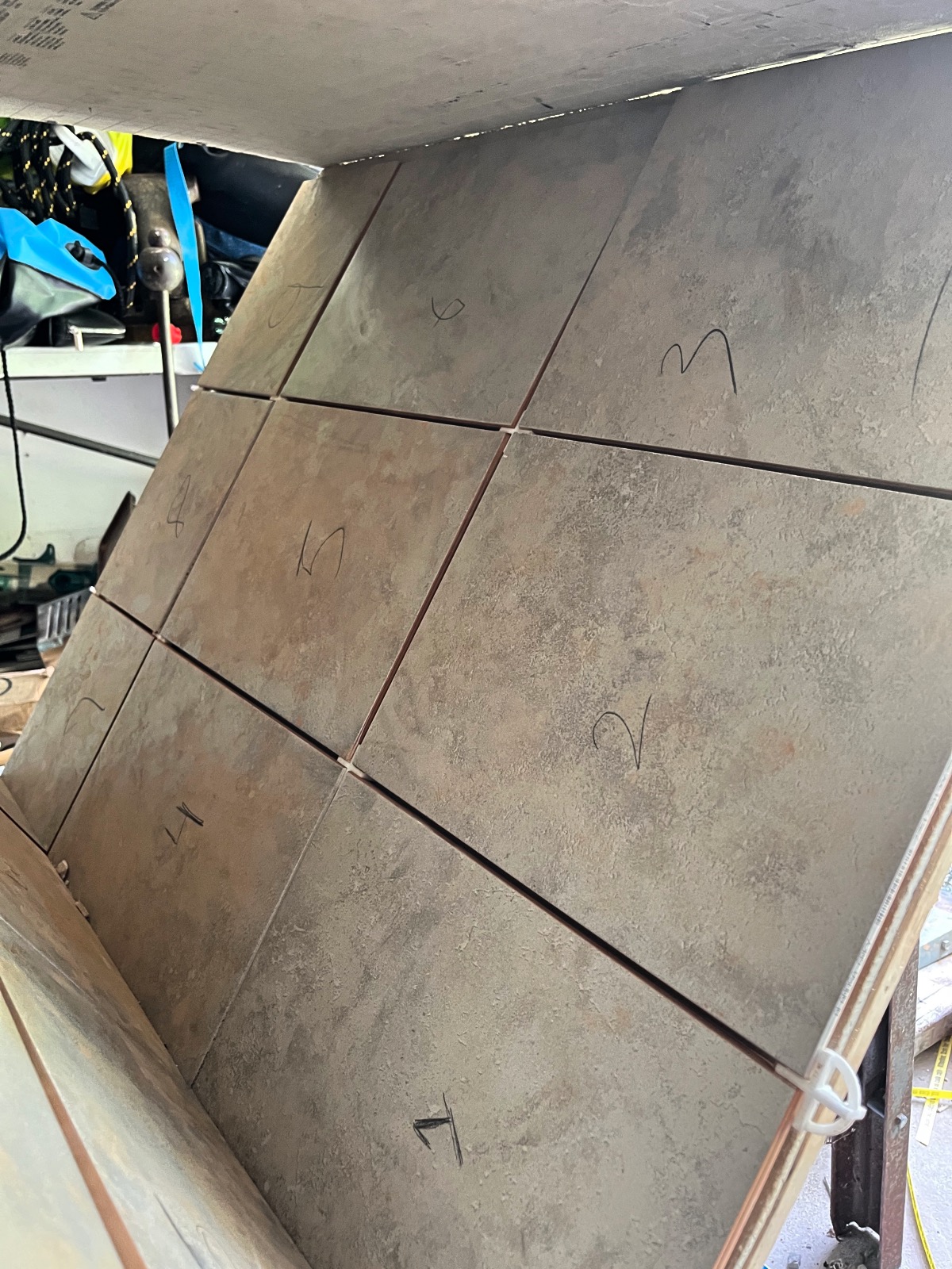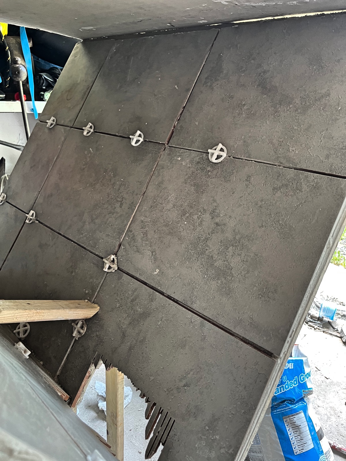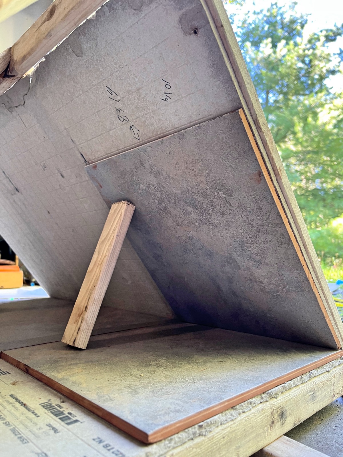 Now we are up to the the tiling part of this DIY Pizza fan club build. It got really messy for our first time tiling but it wasn’t as bad as I thought it would be =). The next goal is to find something cheap to use on the sides of the house that is waterproof. This has slowed down the build because I can’t decide on what I want to use lol