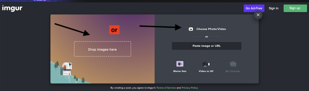 Quick guide below showing how to upload an image to https://imgur.com/upload